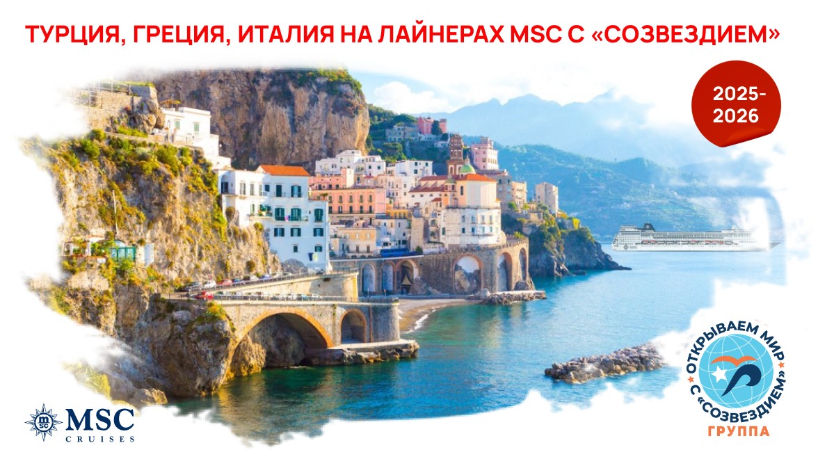 В навигацию 2025 круизные туры «Открываем Восточное Средиземноморье с «Созвездием» пройдут на лайнере MSC Lirica, а в 2026 году вас ждет MSC Fantasia.