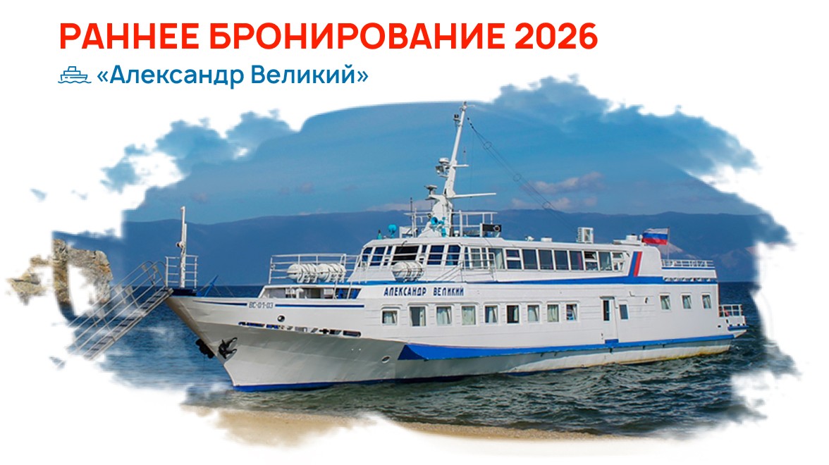 Комфортабельный двухпалубный теплоход «Александр Великий» прошел полную реновацию в 2018 году и может причалить практически в любой точке Байкала . Панорамные окна позволяют любоваться окружающими красотами в любую погоду.