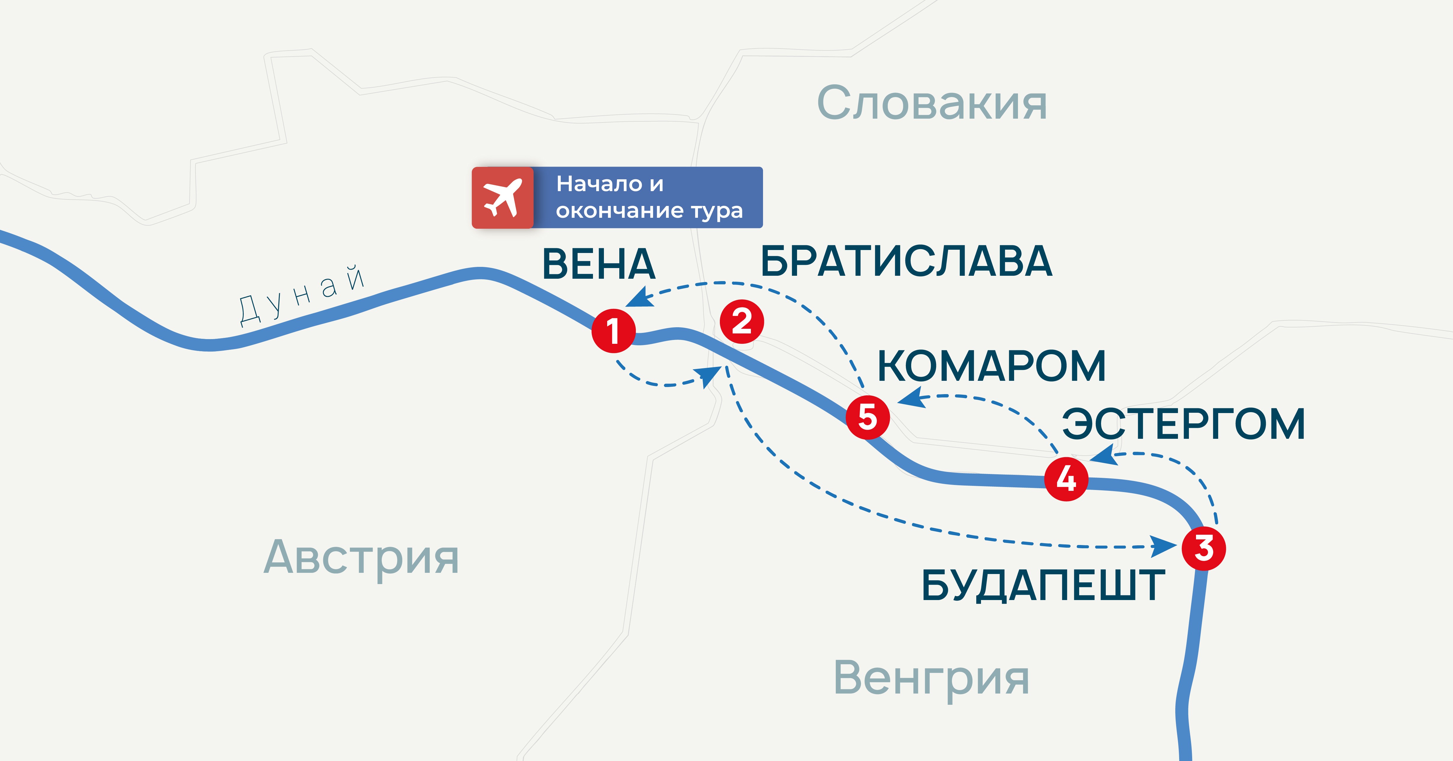 Начинается и оканчивается круиз в Вене – одном из самых красивых и значимых городов Европы. Из Москвы в столицу Австрии есть удобные авиаперелеты с пересадкой в Стамбуле.