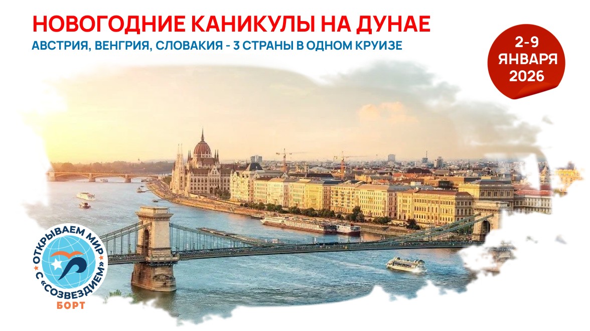 Со 2 по 9 января 2026 вас ждет речной круиз, в котором вы посетите 3 страны – Австрию, Венгрию и Словакию – за одну поездку. Программа круиза специально подобрана для легкости оформления шенгенской визы в Венгрию.