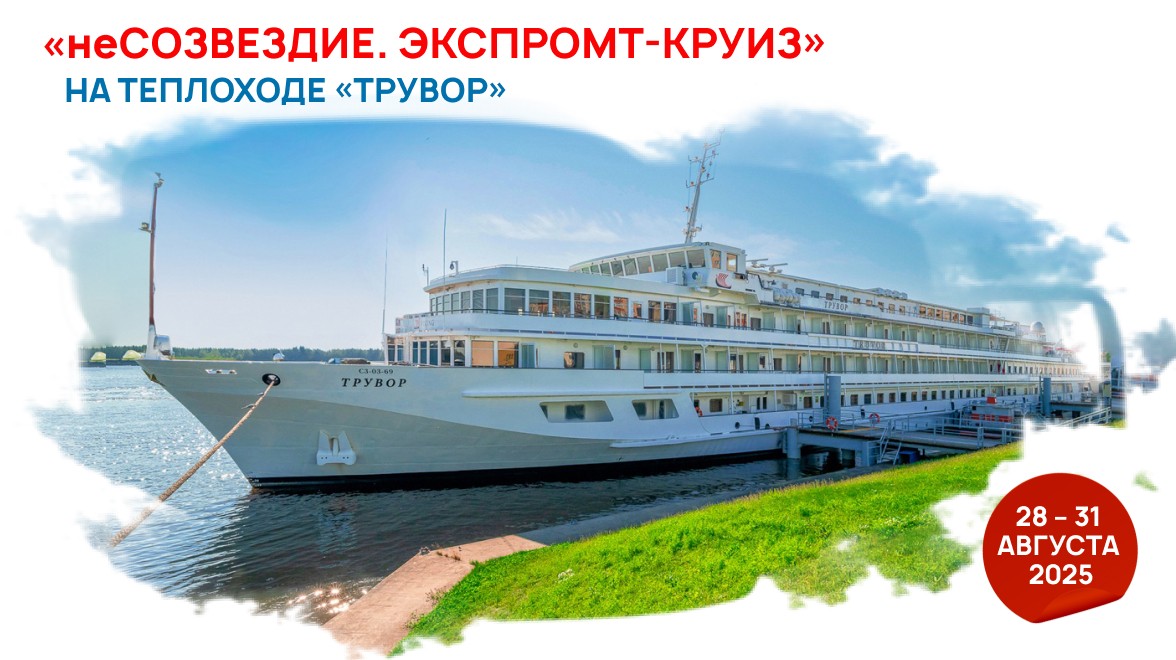 С 28 по 31 августа теплоход «Трувор», в рамках проекта «неСОЗВЕЗДИЕ. Экспромт-круиз», отправится в круиз по маршруту Санкт-Петербург – Мандроги – Коневец – Валаам – Санкт-Петербург.