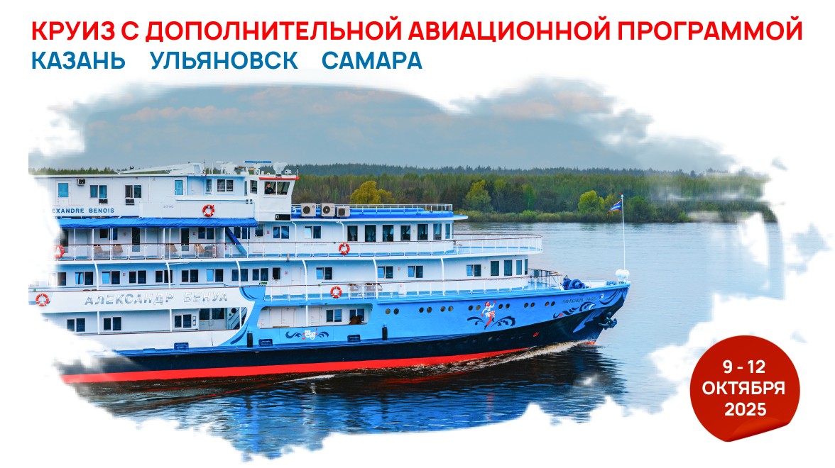 Рады сообщить, что с 9 по 12 октября 2025 на теплоходе «Александр Бенуа» пройдет необычный «Авиакруиз» – совместная программа нашего генерального партнера - круизной компании «Созвездие» – и Сергея Мартиросяна, известного авиационного энтузиаста, популяризатора авиации и руководителя проекта «Авиатор.ру».