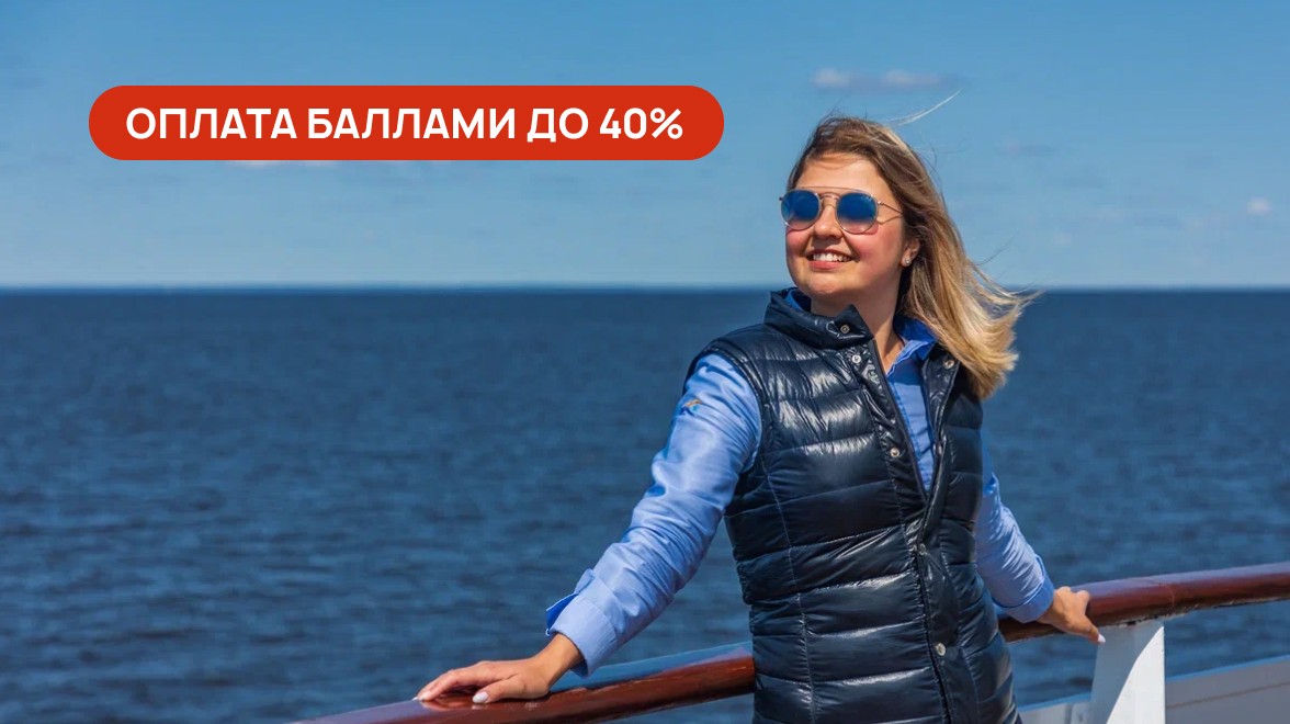 С 12 августа 2025 только для избранных круизов навигации 2025 действует оплата баллами Клуба Любителей Круизов до 25% и 40% от стоимости круиза.