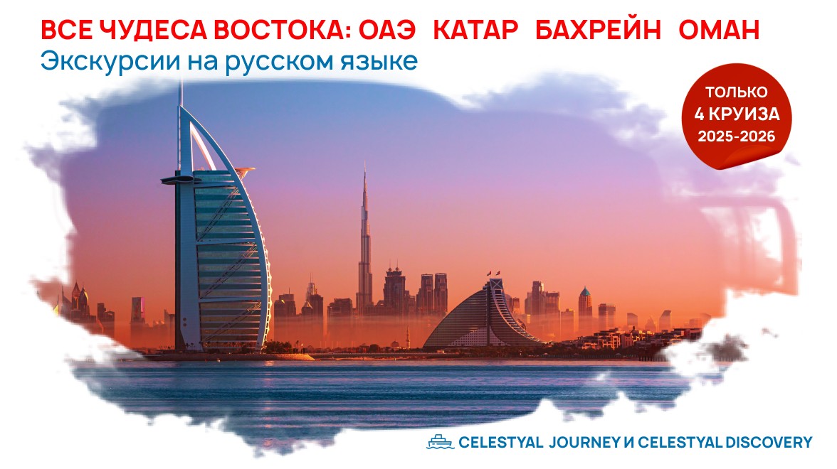 Мы видим ваш интерес к данному направлению, и специально для вашего удобства круизный центр «Инфофлот», совместно с круизной компанией Celestyal Cruises, представляет 4 рейса с экскурсиями на русском языке в самое популярное время для отдыха в Персидском заливе – с декабря 2025 по март 2026.
