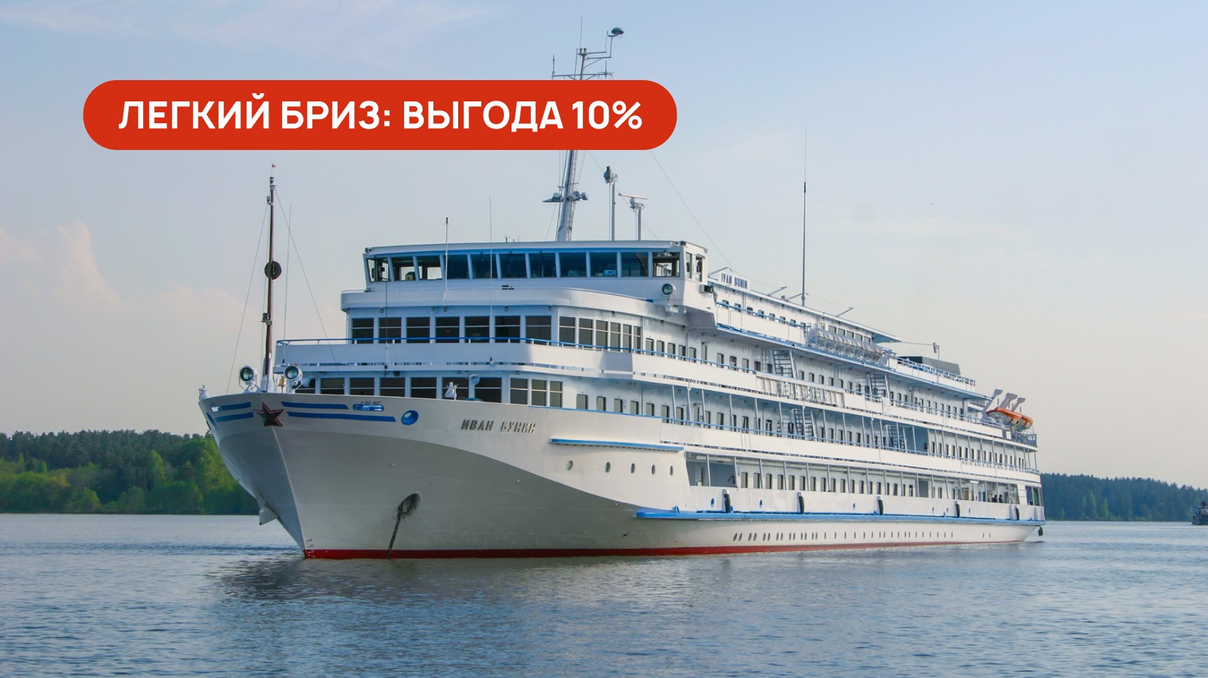 - скидка 10% - для избранных круизов на теплоходах «Иван Бунин» и «Павел Миронов». Стоимость круизов на нашем сайте указана с учетом акционной скидки;