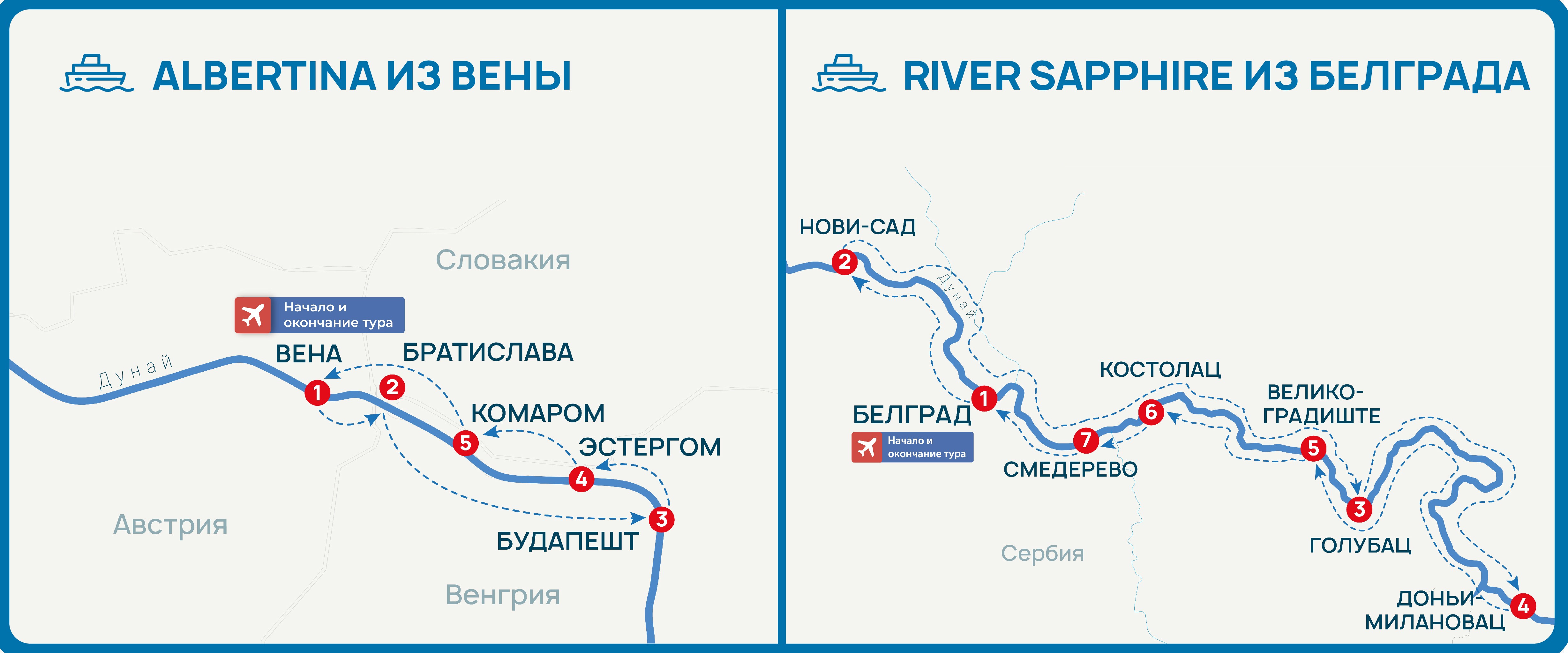 - 2 – 9 января 2026 – новогодние каникулы в круизе на элегантном и камерном теплоходе Albertina 5*, с возможностью посетить сразу 3 страны – Австрию, Венгрию и Словакию – за одну поездку. Программа круиза специально подобрана для легкости оформления шенгенской визы в Венгрию.