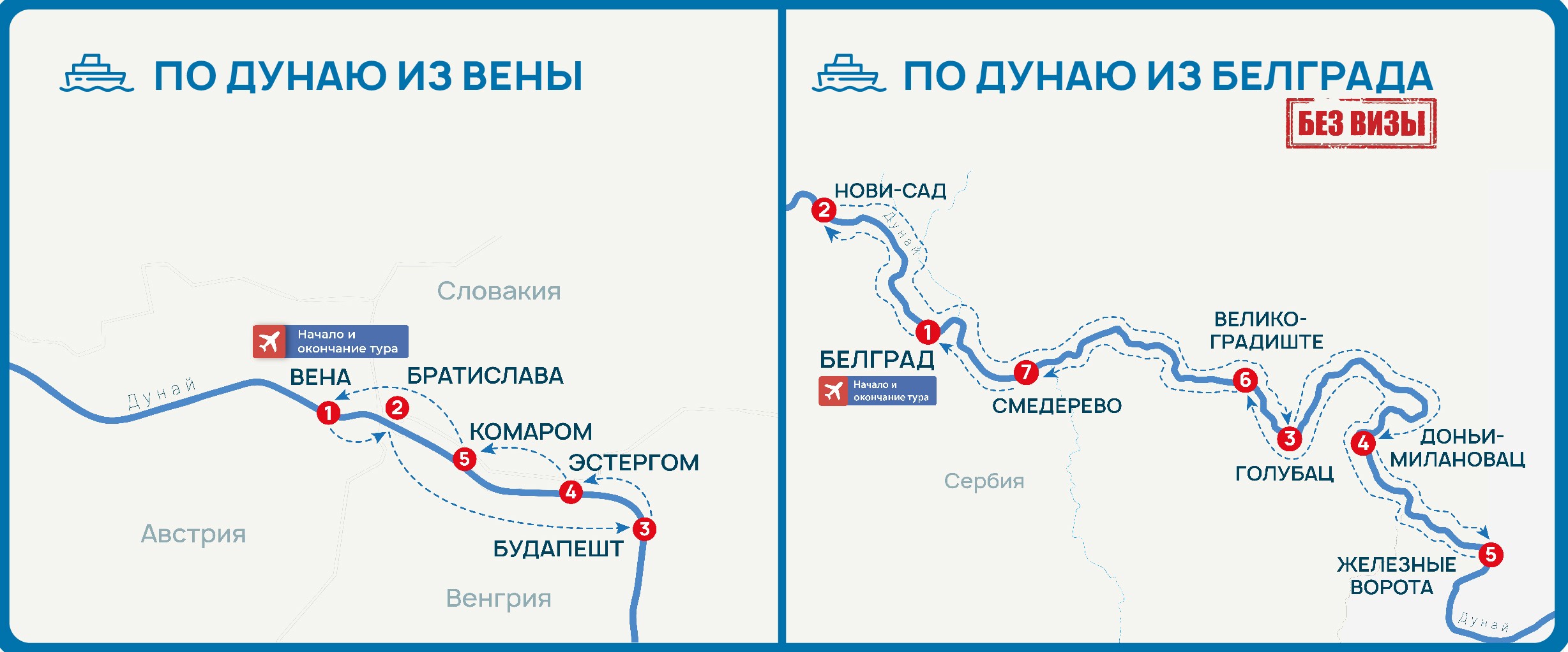 - 25 марта – 1 апреля 2026, март – май 2027 – специально разработанный для российских туристов, эксклюзивный безвизовый маршрут по Сербии на теплоходе премиум-класса River Sapphire. Для путешествия нужен только загранпаспорт.