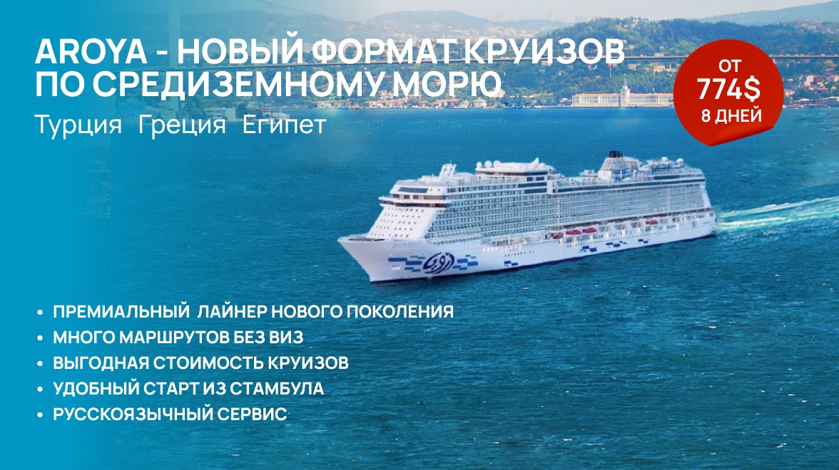 Все круизы на лайнере AROYA по Средиземному морю начинаются в Стамбуле – городе, где Восток встречается с Западом. Для туристов из России это один из самых удобных вариантов отправления в круиз: прямые перелеты из разных городов, знакомая инфраструктура и отсутствие сложных визовых формальностей.